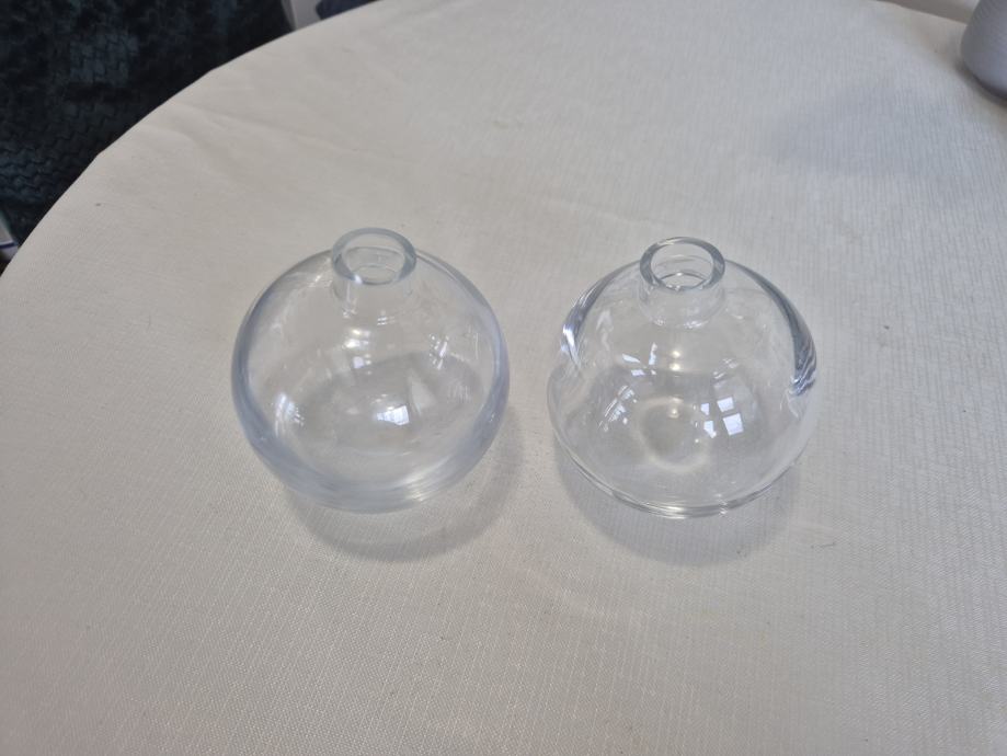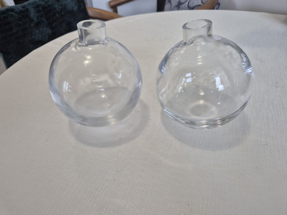 Prodajem dvije elegantne staklene vaze, kuglastog oblika, idealne za uređenje doma, ured ili darivanje. Obje su bez oštećenja, korištene vrlo kratko i pažljivo. Promjer 12 cm, visina do vrha 15 cm