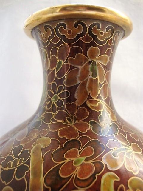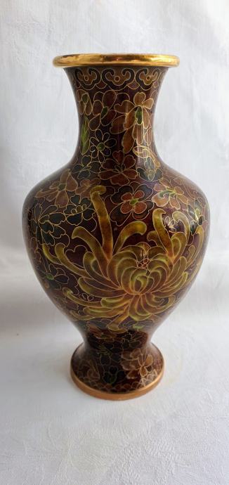 Krasna kineska vaza izrađena od mesinga te ručno ukrašena emajlom stara kineska tehnika