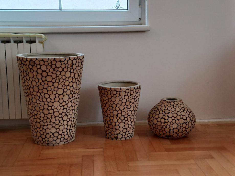 Drvena vaza dimenzije visina 25, promjer 30 cm.