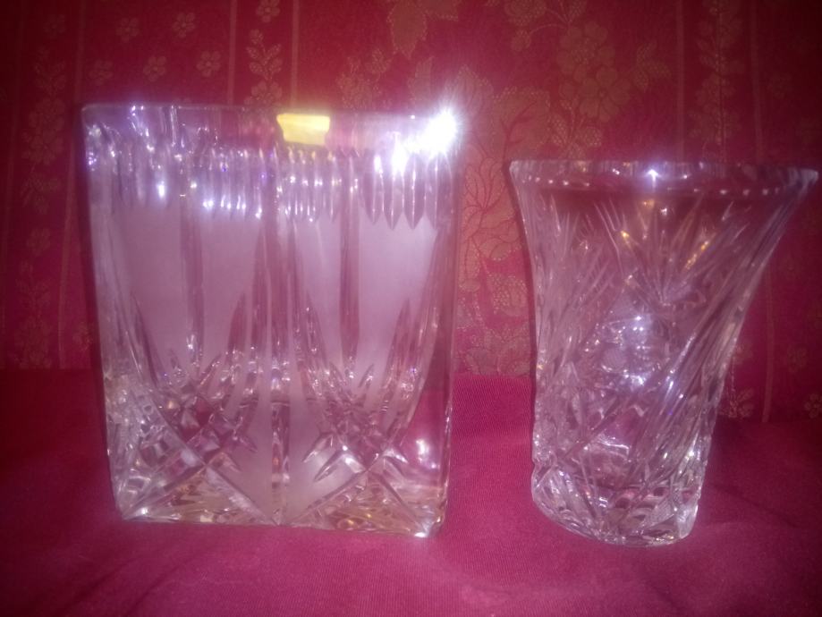 Dvije kristalne vaze,ručni rad,jedna visine 12 cm.,druga 15 cm.visoka,12 široka,obje za 250 kuna.