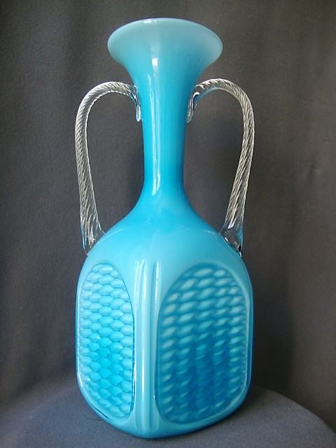 EMPOLI MID CENTURY,OPALINE BLUE GLASS ITALIAN VASE/STAKLENA VAZA
