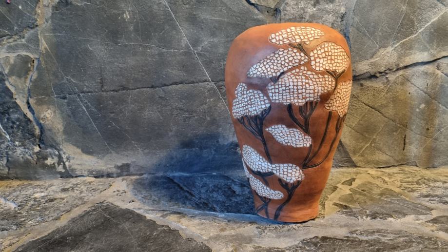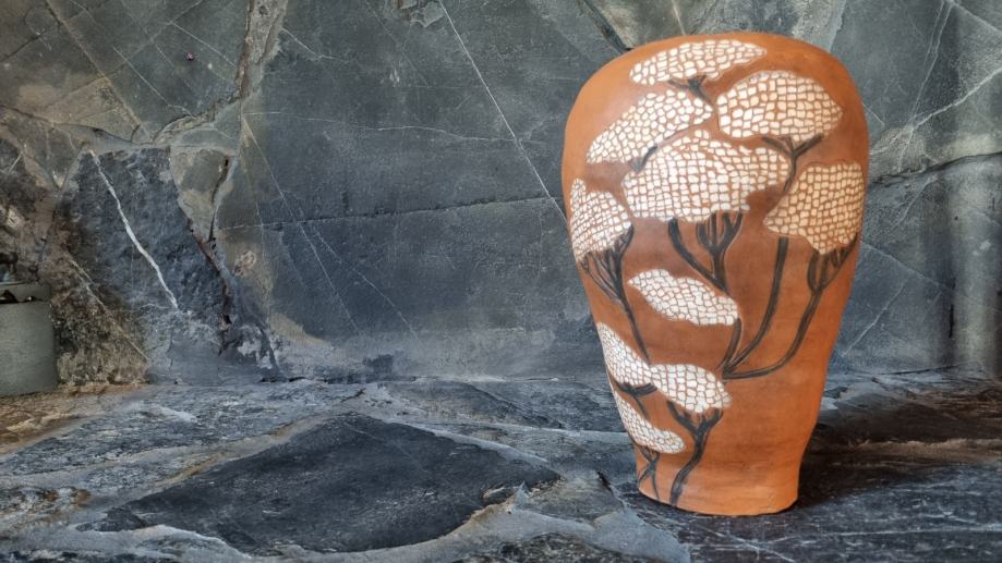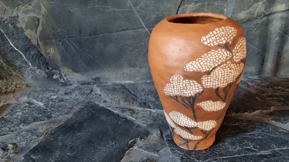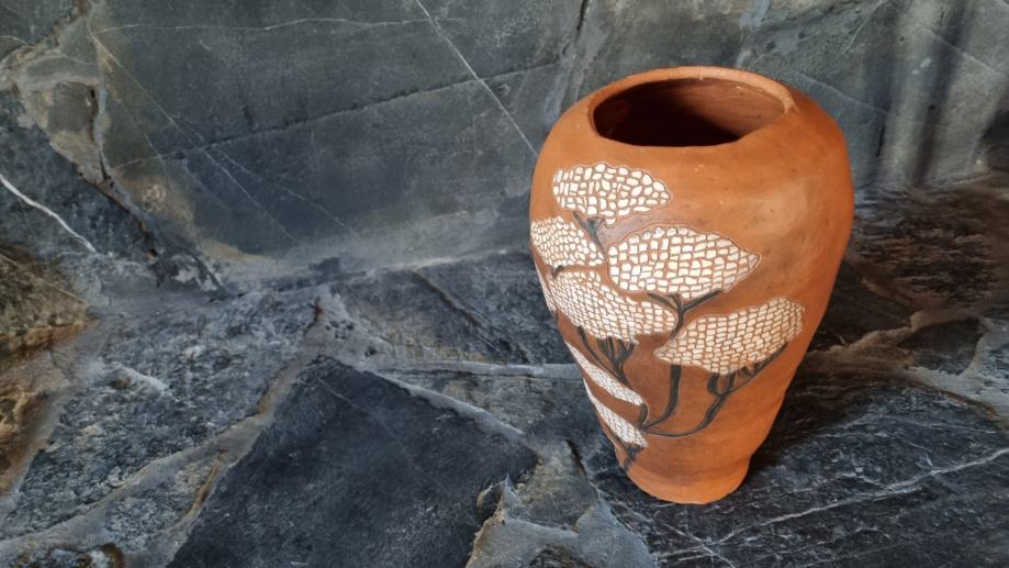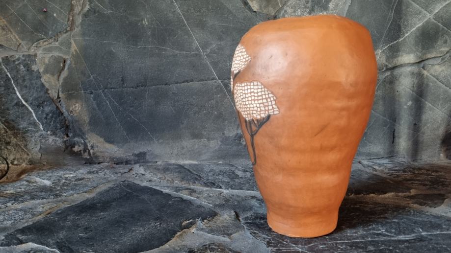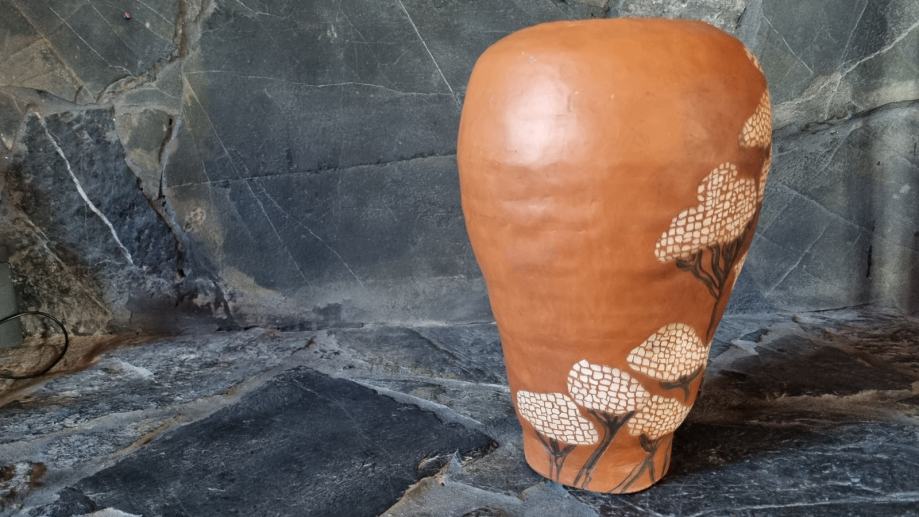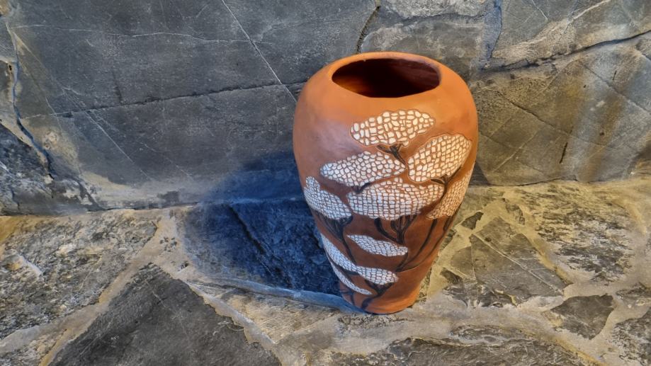 Ukrasna keramička vaza, u sgraffito tehnici pravo je umjetničko djelo.
