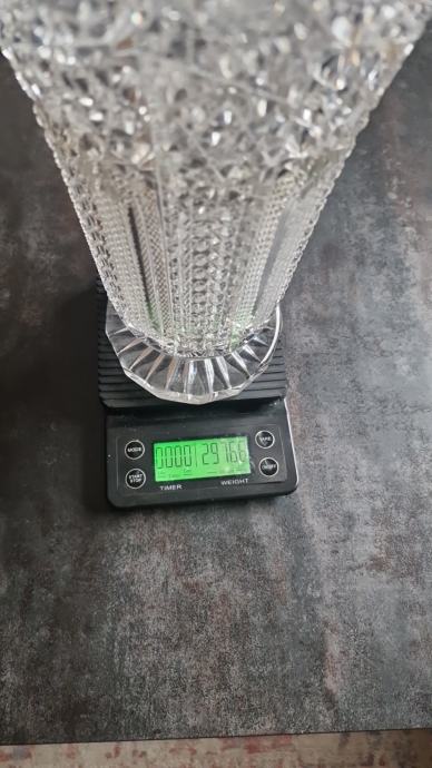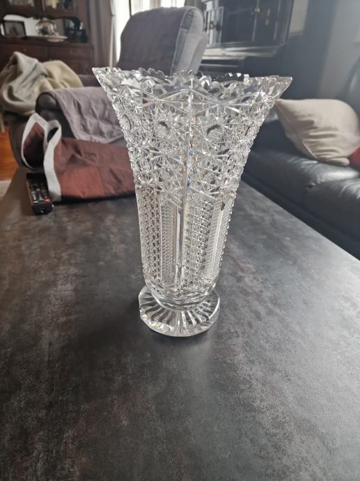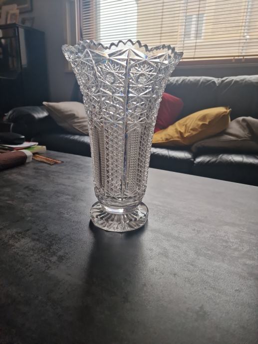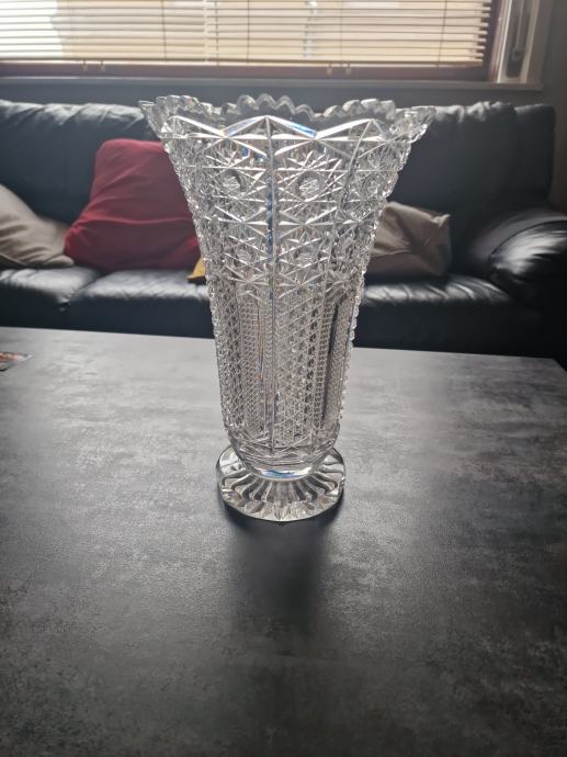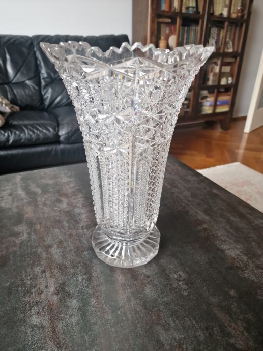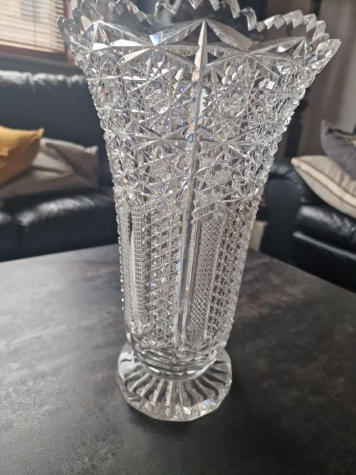 Prodajem, veliku, kristalnu vazu iz nasljeđa, težina 2.976 gr., prekrasno brušena, kristal Bohemia, visina vaze 32 cm, promjer gornjeg otvora 20 cm, donjeg postolja 12 cm.