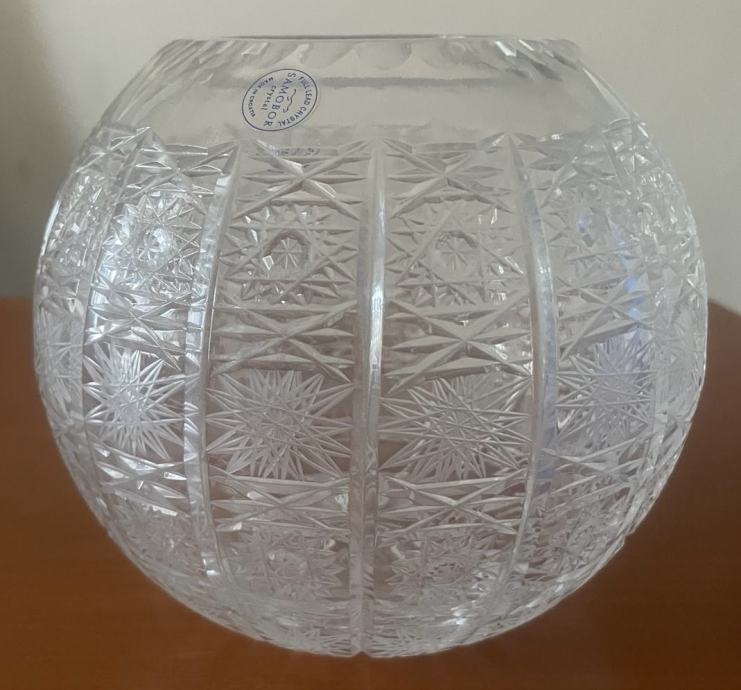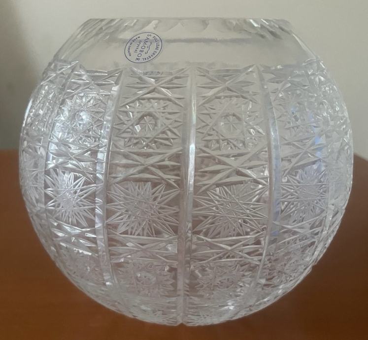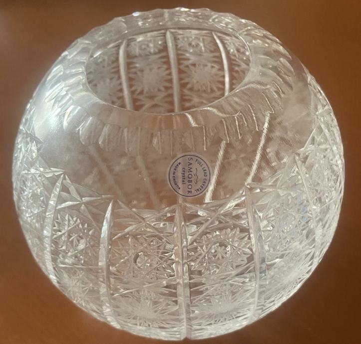 Kristala vaza nova, nekoristena, Samobor kristal. Okruglog je oblika i visine 15 cm sa otvorom na vrhu od 7 cm.