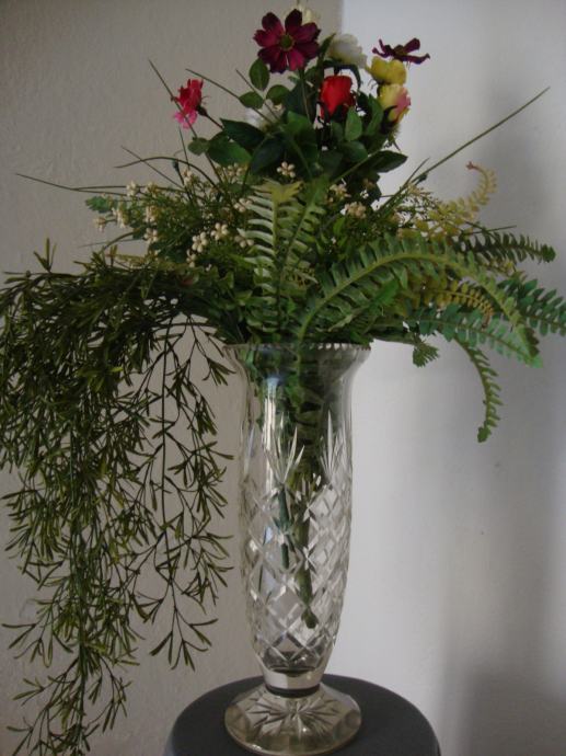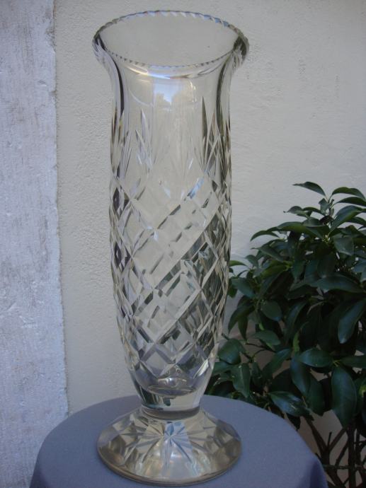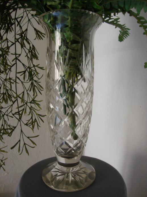 Velika impozantna visoka kristalna stara vaza preko 80 godina starosti predivno brušeni masivni kristal težine 3 kg