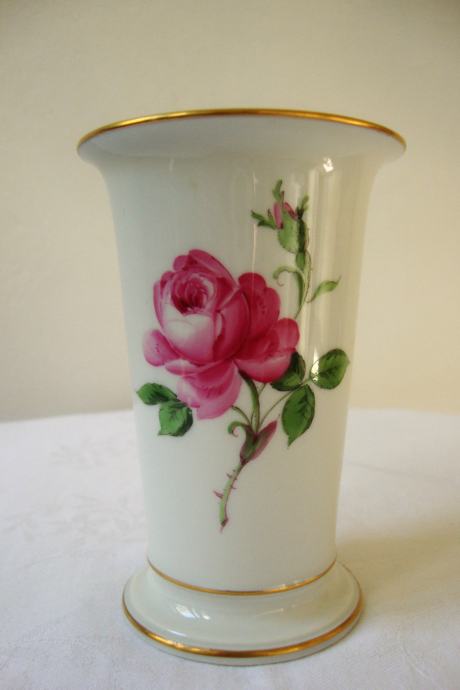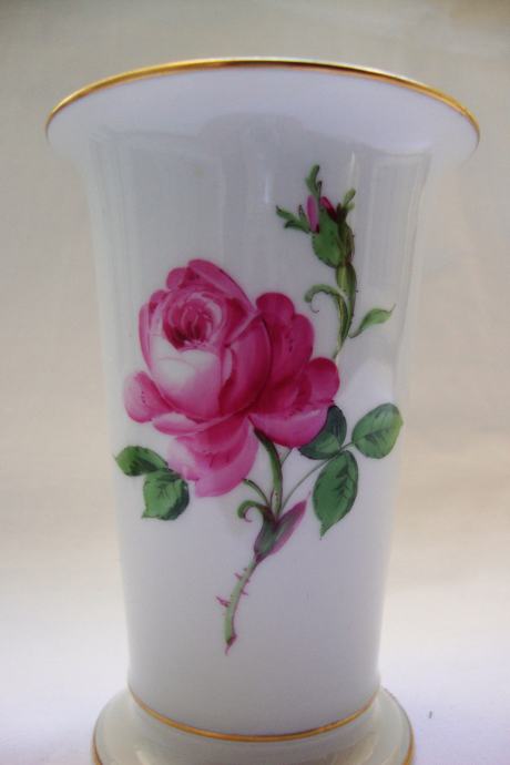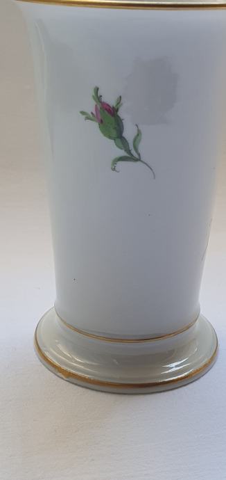 Kolekcionarska prekrasna porculanska njemačka vaza Meissen vaza visina :19,6 cm x 7,3 cm otvor , a dno promjera 5,9 cm sa žigom i utisnutim žigovima - za manje bukete cvijeća - nije korištena btijednost preko 200 eur