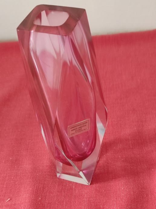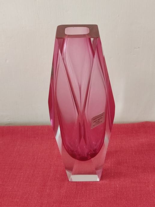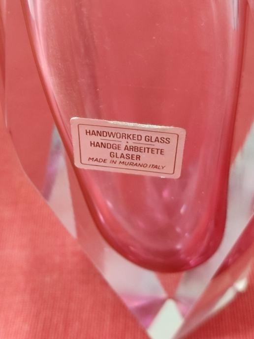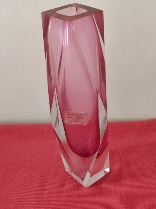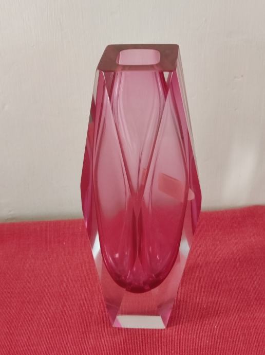 Murano vaza,pink,fasetirana. Vazu je napravljena prema dizajnu Alessandro Mandruzzato. Ručno rađena. Kupljena na otoku Murano šezdesetih godina dvadesetog stoljeća.