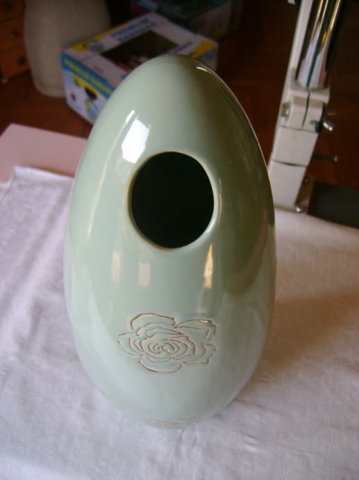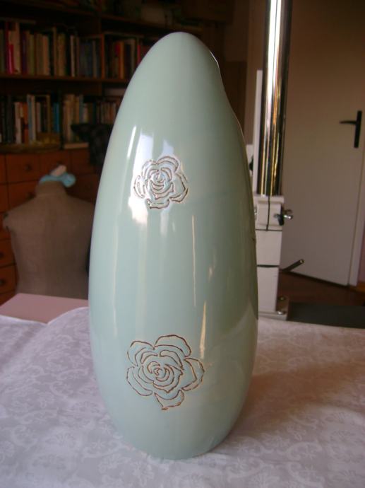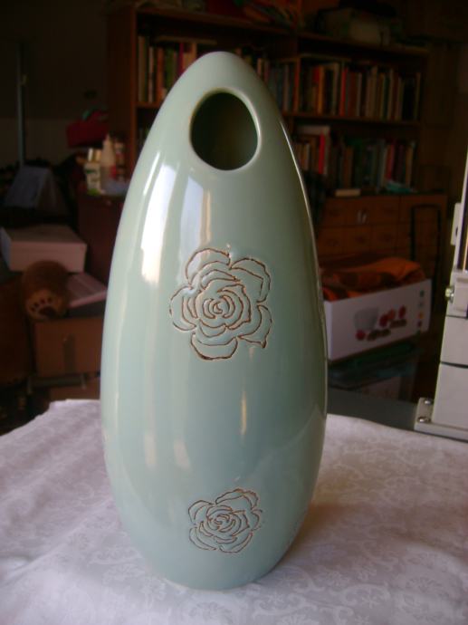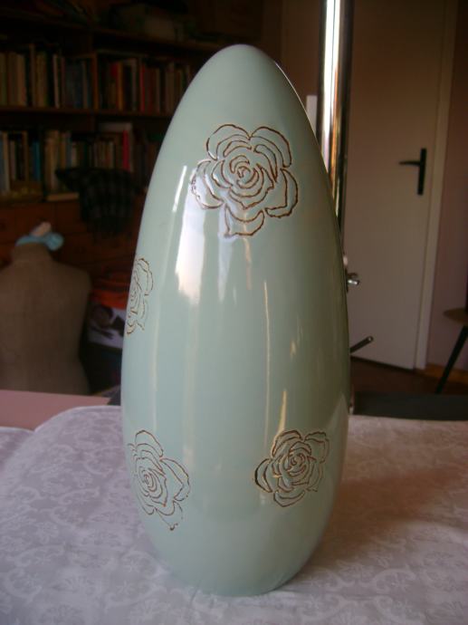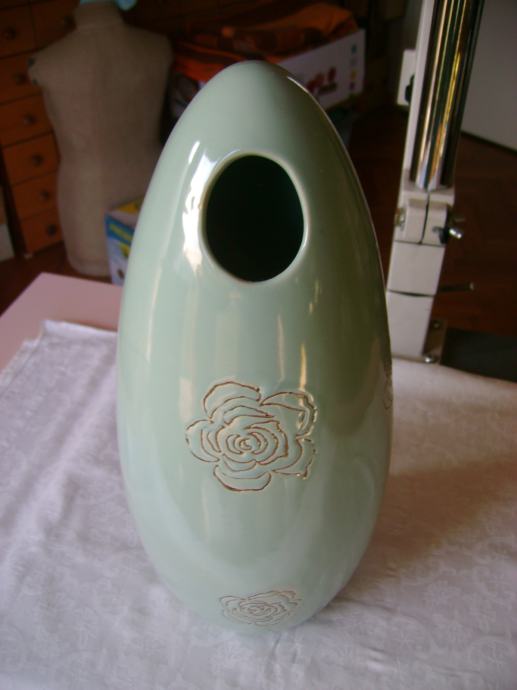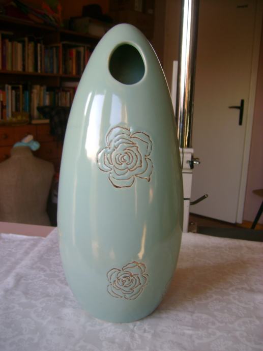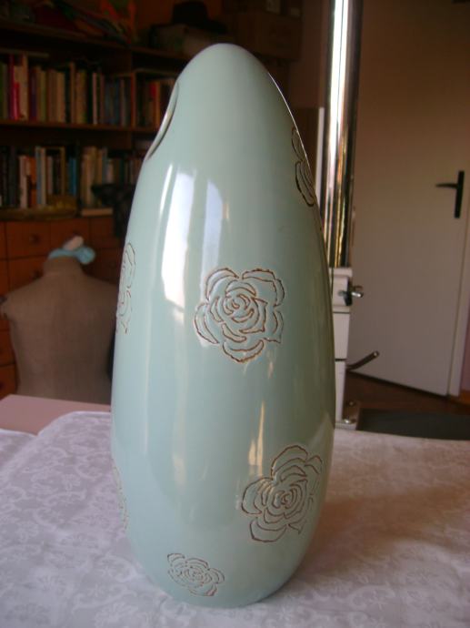 Prekrasna keramička vaza sa aplikacijama ruža, visina cca 32 cm, širina na najširem dijelu cca 14 cm, korištena, odlično očuvana, bez ikakvih oštećenja - stanje je vidljivo na slikama.