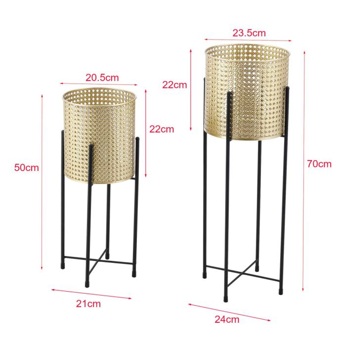 Set Stalci za saksije Mol, je 2-dijelni set, crne i zlatne boje iz en.casa kolekcije. To je savršen izbor za dodavanje stilskog i modernog izgleda vašem domu. Ovaj set od dva metalna stalka za biljke spaja funkcionalnost i estetiku s bezvremenskim dizajnom. Elegantan kontrast crne i zlatne boje savršen je za svaku prostoriju kojoj je potreban dodatni ukrasni element.