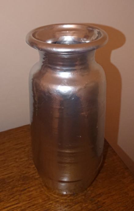 Prodajem srebrno lakiranu keramičku Vazu. Visina 21,5 cm, promjer 8,5-9 cm.