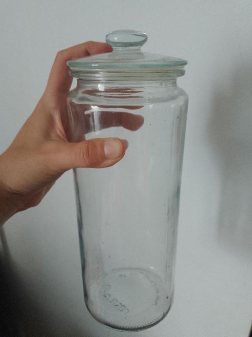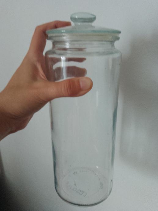 Staklena posuda za tjesteninu / slatkiše s poklopcem Ikea ili ukrasna visoka vaza . Malo korišteno. Očuvano. 4 eura. Ne šaljem zbog lomljivosti. Pogledajte i moje ostale oglase jer imam popust na više stvari.