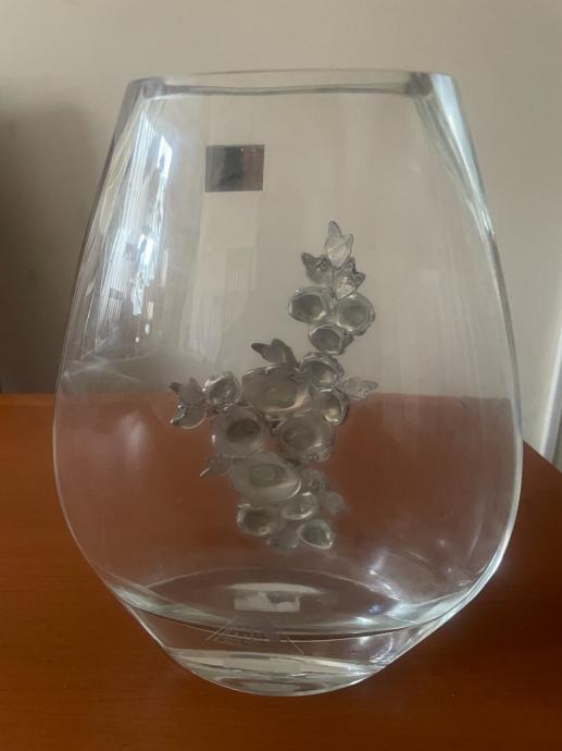 Staklena vaza, nova, nekoristena, rucni rad. Unikat sa granom ruzica sa liscem rucno