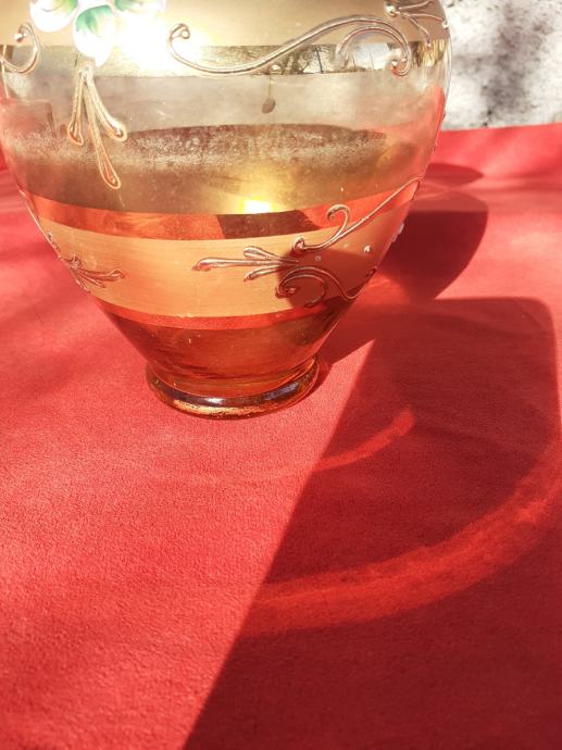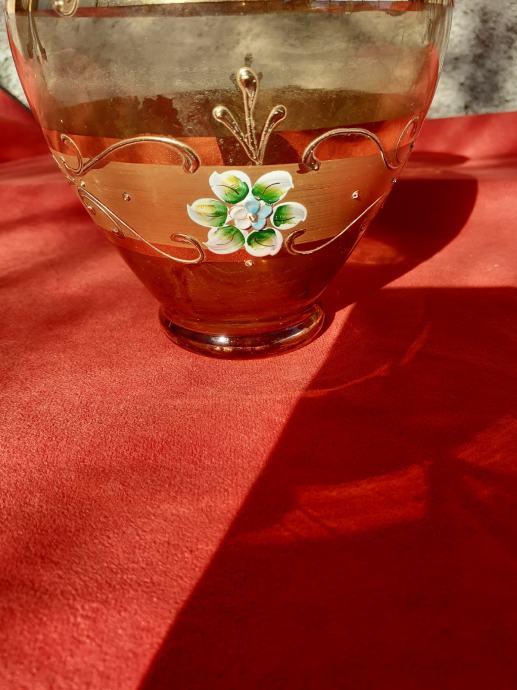 Prodaje se staklena vaza sa cvjetnim uzorkom/motivom na sebi. Vaza je visine 16,8 cm. Vaza ima oštećenja na način da se na pojedinim mjestima izlizala ukrasna boja. Cijena vaze je 40 eura. Mogućnost osobnog preuzimanja u Zadru. Kontakt broj mobitela 091 131 10 36.