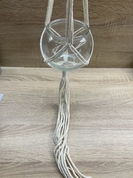Staklena vaza s makrame držačem za vješanje