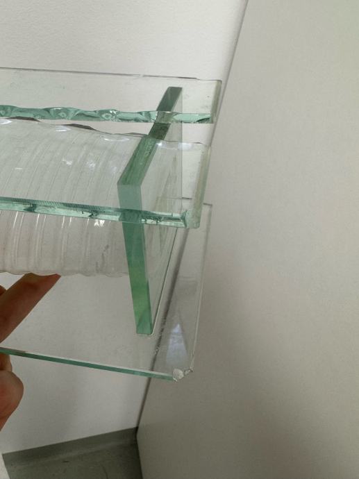 Na rubovima je staklo malo okrhnuto i na jednom mjestu se boja malo izlizala, ali nije jako primjetno te je vaza i dalje funkcionalna