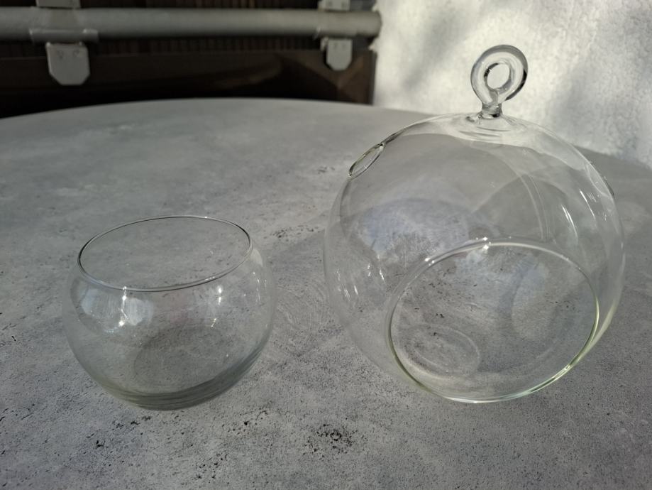 Prodajem 2 staklene posude za svijeće i mini cvijeće