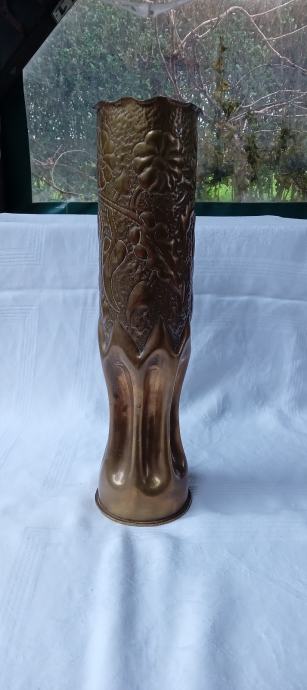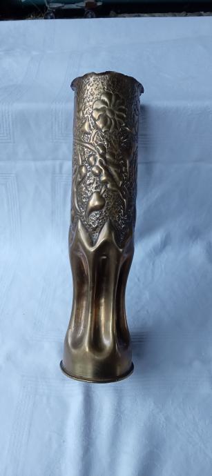 Vojna vaza mesing, ručno rađena ( rovovska umjetnost ) 45e + poštarina, mob 098 959 7317 visina33cm, promjer 9cm.