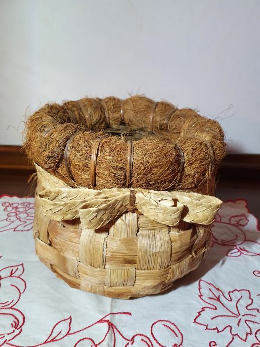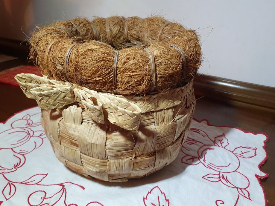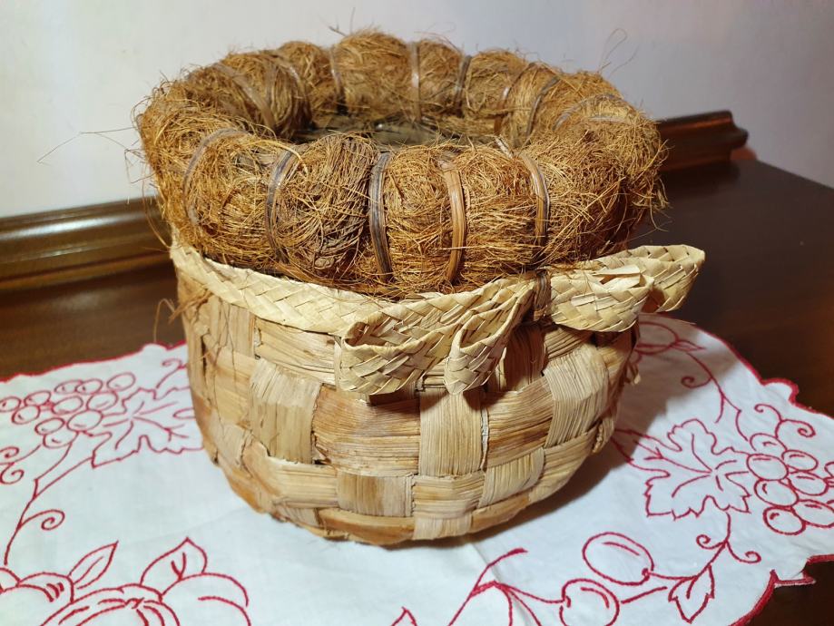 Tegla za cvijeće u kombinaciji komušine i kokosa, kao nova, unutarnji promjer 10 cm, visina 15 cm