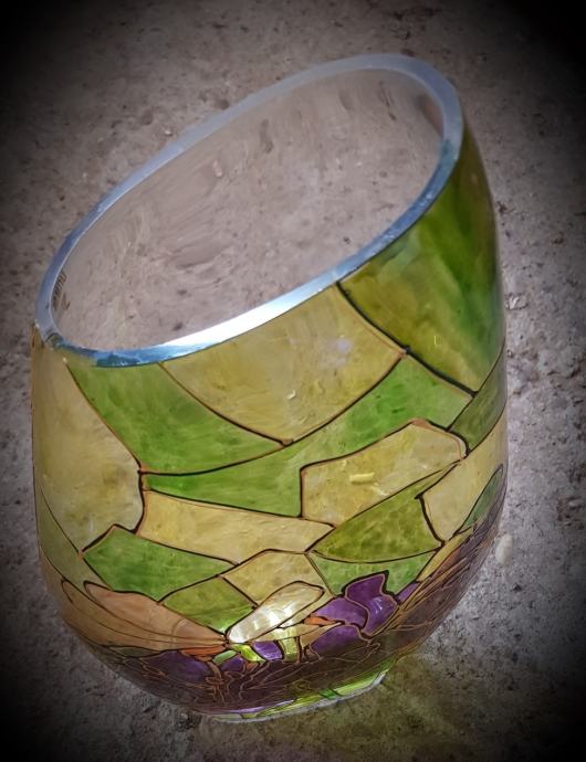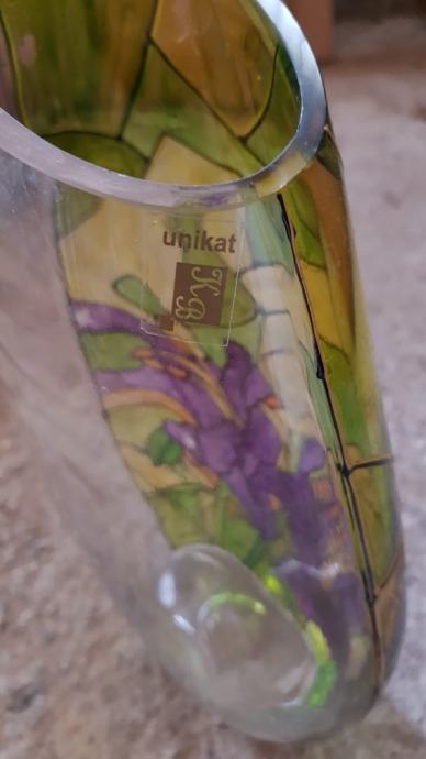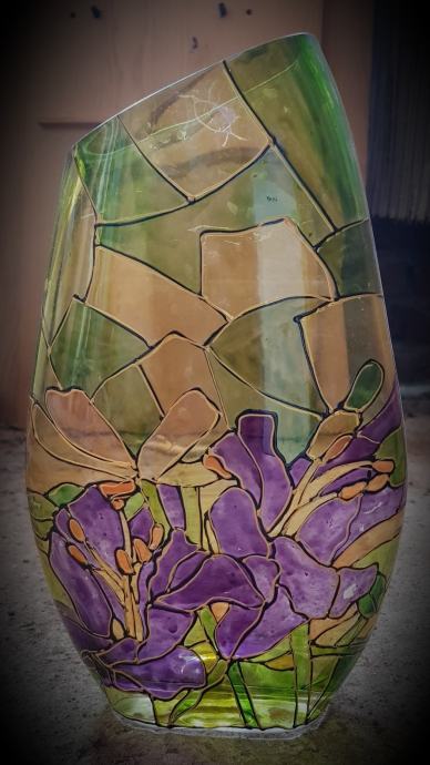 Ukrasna staklena vaza,rucni rad,bojano staklo