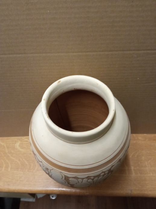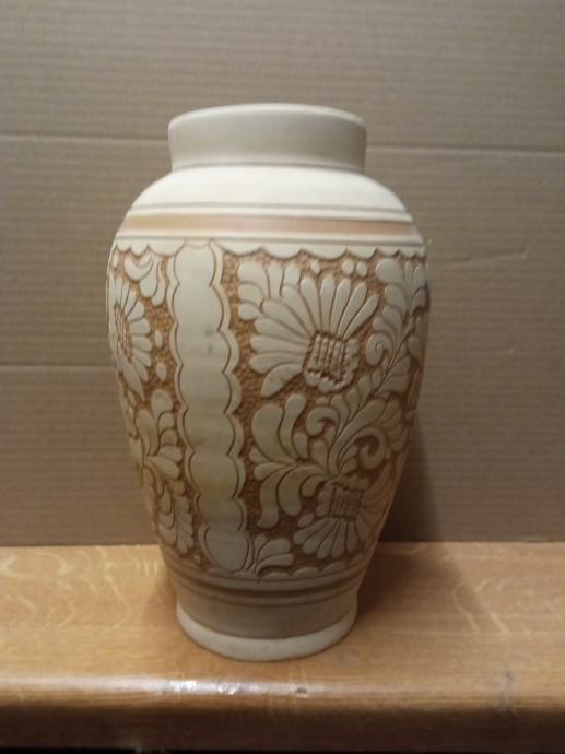 Prodaje vazu od pečene gline s ukrasnim reljefima po sebi .Visoka je 26 cm.Gornji otvor je 8.5 cm te u sredini 15 cm.Kontakt tel:098540539.