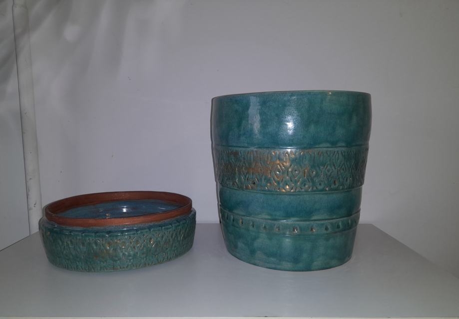 Nova, unikatna, ručni rad keramička posuda/vaza, prekrasne vodeno zeleno-zlatne boje. Kvalitetna izrada. Dim. 27x20cm.