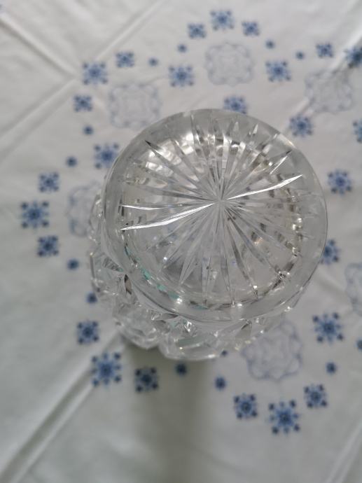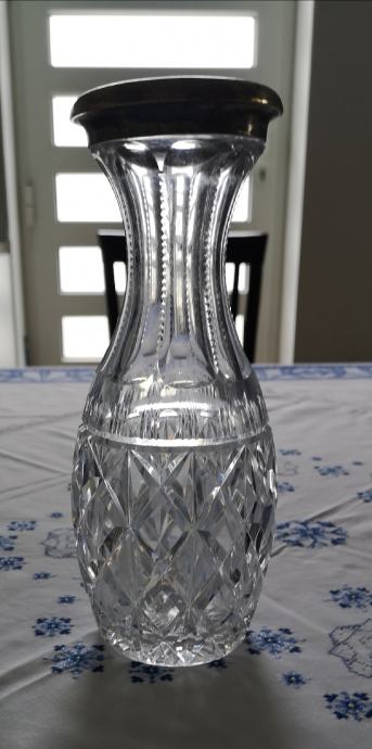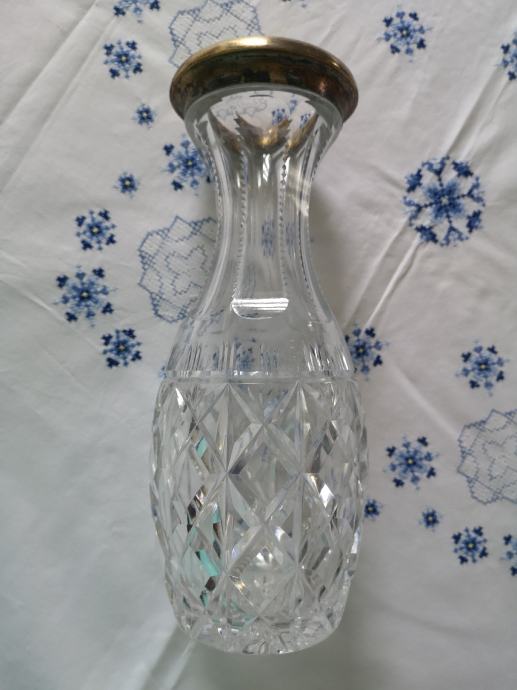 KRISTAL..ne zna se godina proizvodnje ali je u obitelji preko 120 godina..Njemackog je podrijetla.. dno je okruglo.. rezano.. promjer dna je 8 cm.. visina 26 cm.. gornji promjer je 9 cm obucen u srebro-mesing-pozlata ( vremenita patina - nisam siguran sto je ).. tezina 2,270 kg.. 100% uscuvano bez i najmanjeg ostecenja.. Kod moguce kupo - prodaje se preporuca osobno preuzimanje..slanje moguce.. Nazvati : 099 557 00 00..hvala