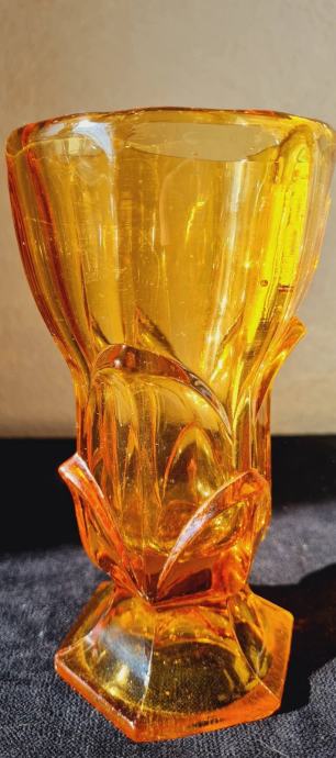 Art deco vaza, Czechoslovakia. Amber staklo. Lijepo sačuvan komad, posebne izrade, prekrasna je.