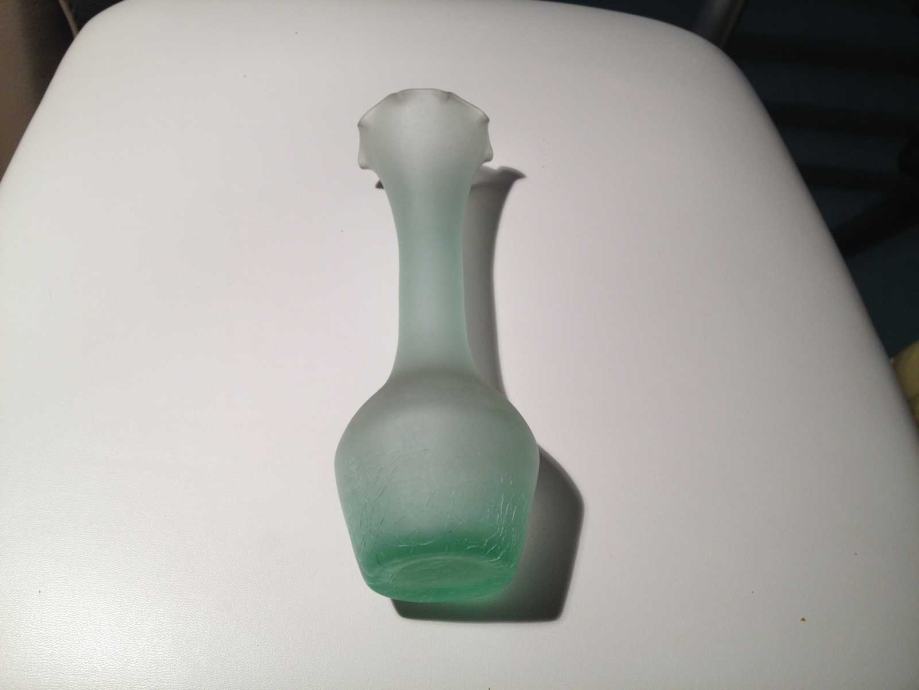 Staklena zelena vaza za cvijeće - 20 cm visine.