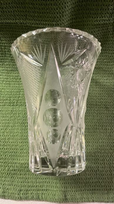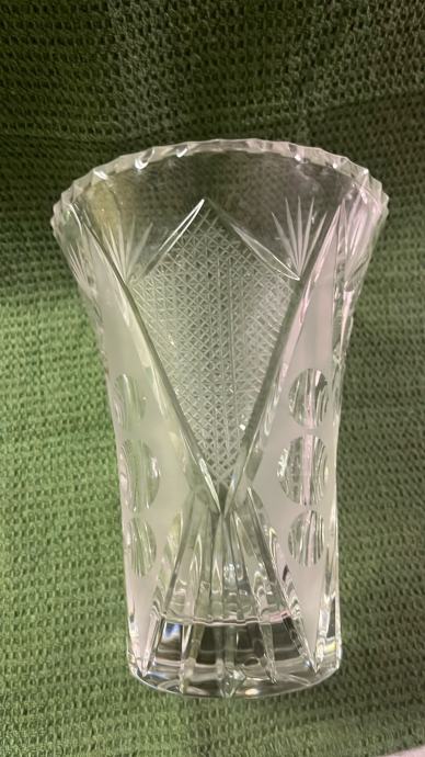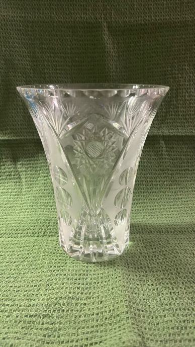 KRISTAL , ručno brušena. , stabilna vaza , neoštečena , visine cca 14 cm