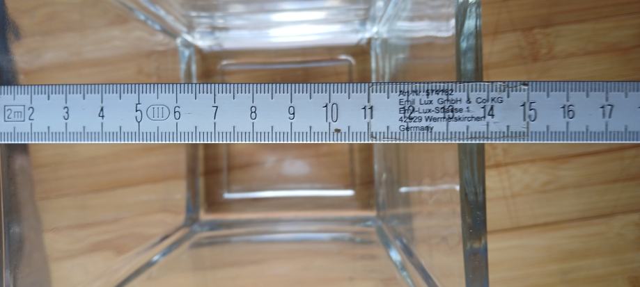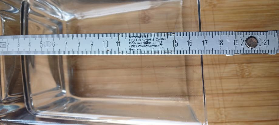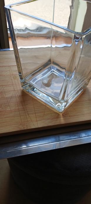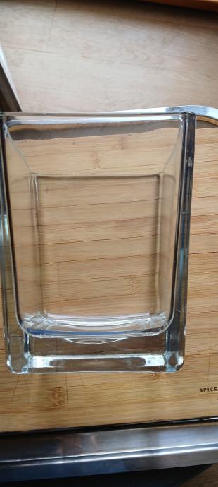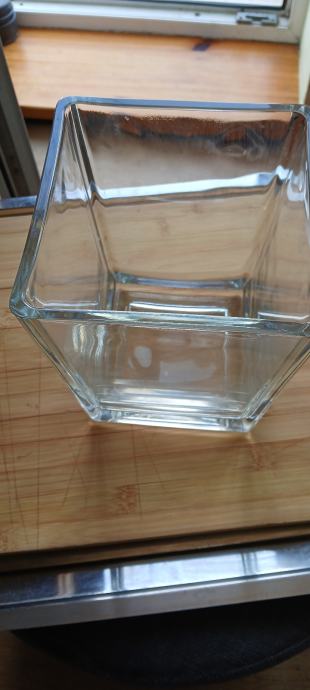 Kvadratna staklena vaza masivna i teska. U vrlo sobrom stanju visine 17 cm ali i 14 cm širine .šaljem pošta tisak njuškalo.