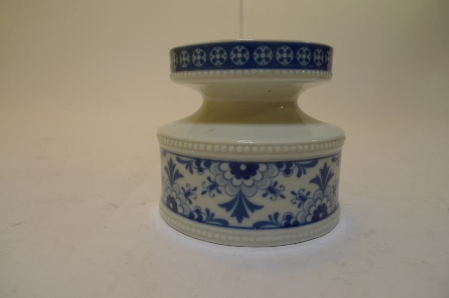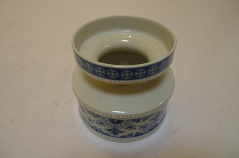 Keramička vaza sa floralnom dekoracijom i točkastom bordurom visine 9 cm, za nisko rezano cvijeće.