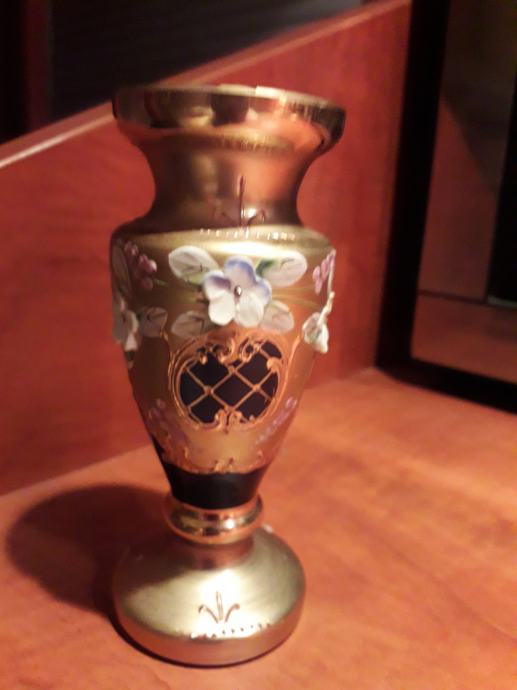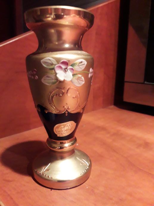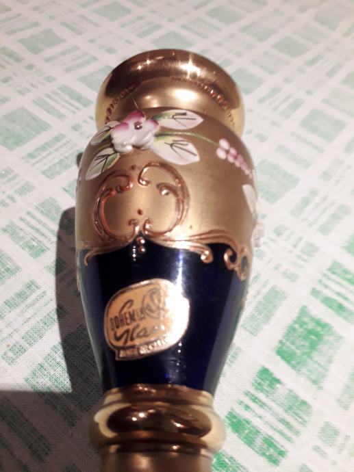 BOHEMIA cobalt vaza sa pozlatom 24K, puno emajliranih ručno izrađenih cvjetića, očuvana- zemlja porijekla Češka