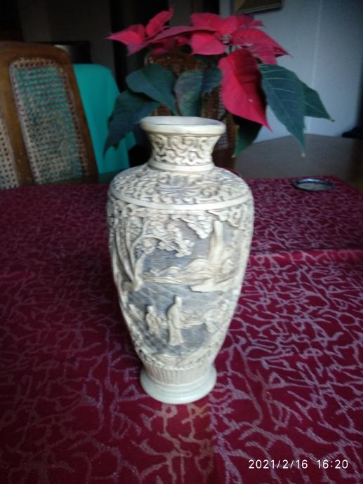 Vaza, reljefno obrađena cijela površina vaze, stimulirajući izrezbarenu slonovaču, visina 22 cm