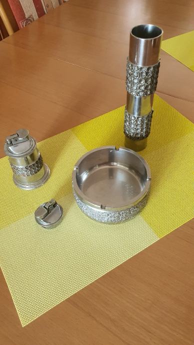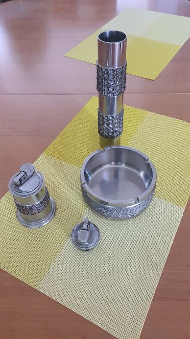 Unikat ! vaza,pepeljara i upaljač sve je ručni rad i napravljeno je od medicinskog inoxa.ukupna težina je 3370 grama (3,37kg.)