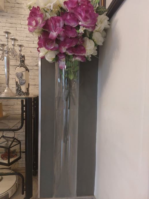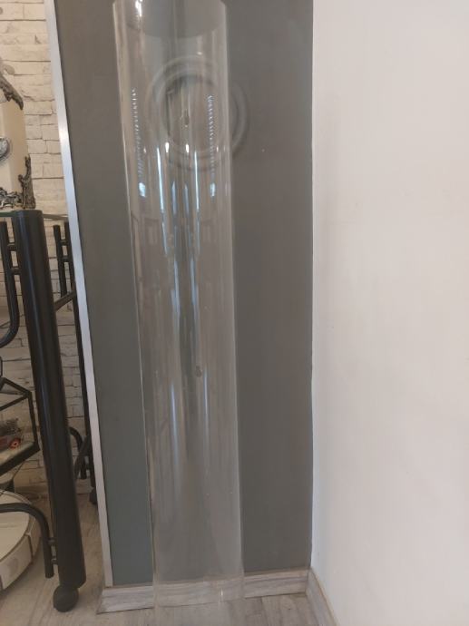 VAZA OD PLEXIGLASA, VISINA 100 CM. PROMJER 15 CM. IMA IZBUŠENE 3 RUPICE DA SE MOŽE UČVRSTITI NA NEKAKAV NOSAČ ILI ŠERAFE. UZ MALO MAŠTE KRASAN DEKORATIVNI PREDMET.