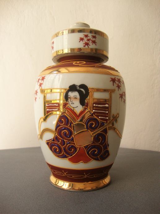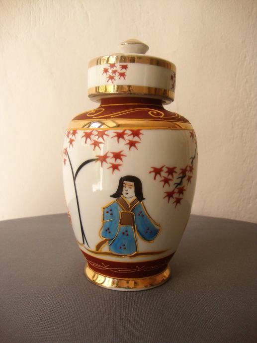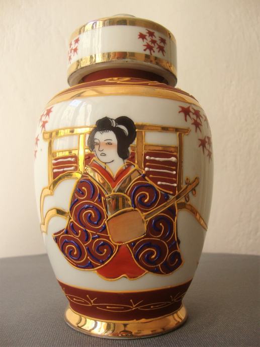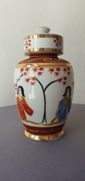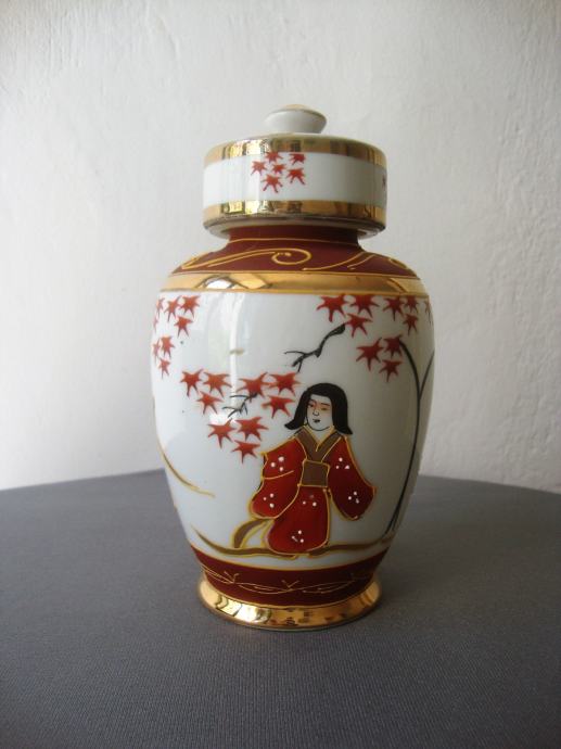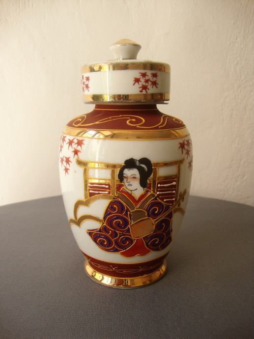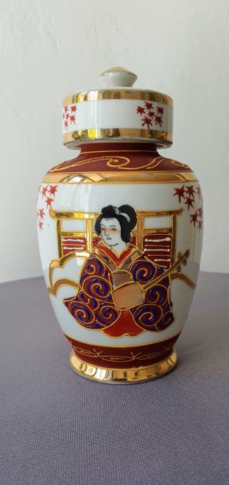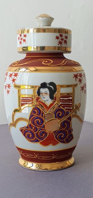 Predivna posuda sa poklopcem ručno oslikano sa motivom gejši u perfektnom stanju žig ispod posude