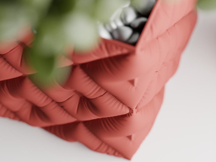 Nevjerovatna tekstura daje dubinski osjećaj mekanog jastuka, a zapravo je izrađena od biorazgradive plastike odnosno obnovljive biomase, obično od fermentiranog biljnog škroba poput kukuruza, kasave, šećerne trske ili pulpe šećerne repe.