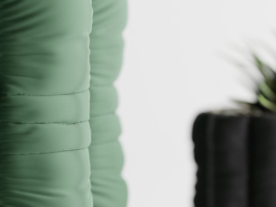 Nevjerovatna tekstura daje dubinski osjećaj mekanog jastuka, a zapravo je izrađena od biorazgradive plastike odnosno obnovljive biomase, obično od fermentiranog biljnog škroba poput kukuruza, kasave, šećerne trske ili pulpe šećerne repe.
