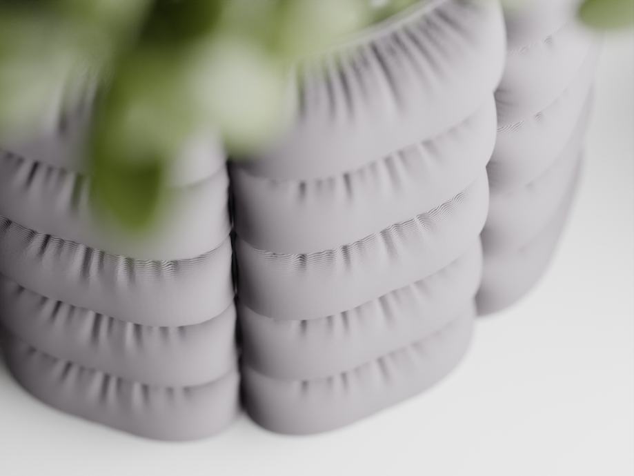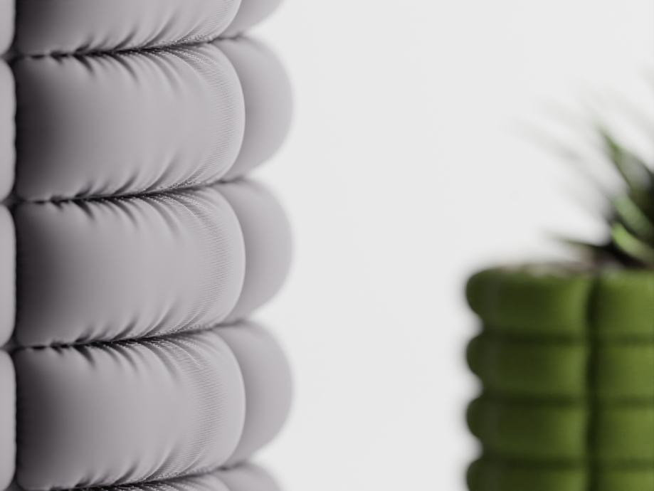 Nevjerovatna tekstura daje dubinski osjećaj mekanog jastuka, a zapravo je izrađena od biorazgradive plastike odnosno obnovljive biomase, obično od fermentiranog biljnog škroba poput kukuruza, kasave, šećerne trske ili pulpe šećerne repe.
