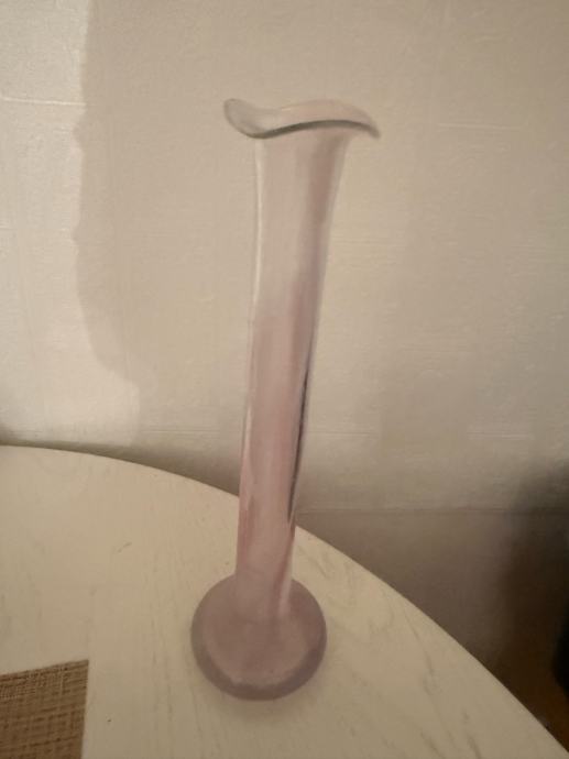 Prodajem staklenu vazu nježne ružičaste boje. Radi se o visokoj, vitkoj vazi s okruglom bazom i elegantno izvijenim otvorom, kakva lijepo pristaje kao samostalni dekorativni element. Staklo je mat završne obrade s blagim prozirnim nijansama.