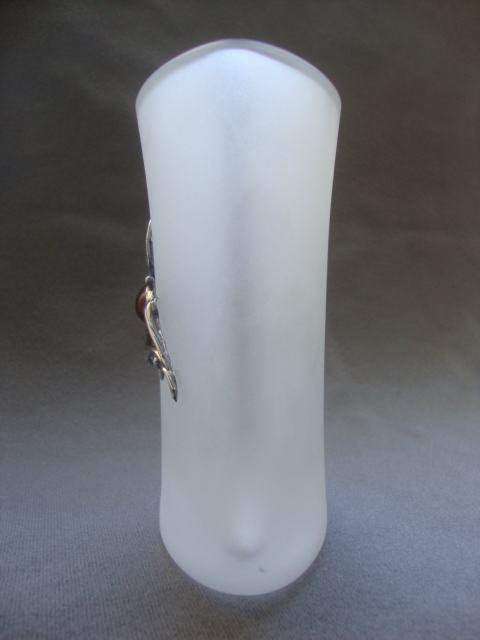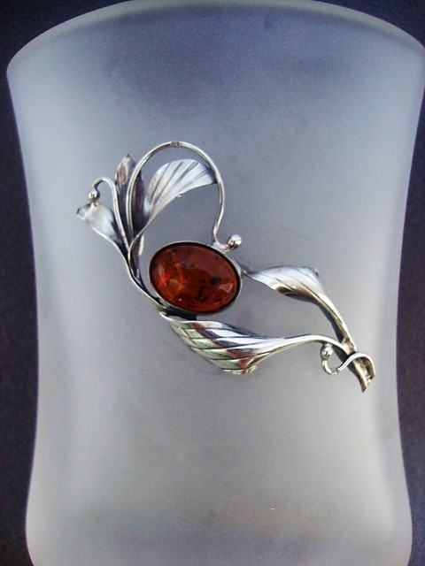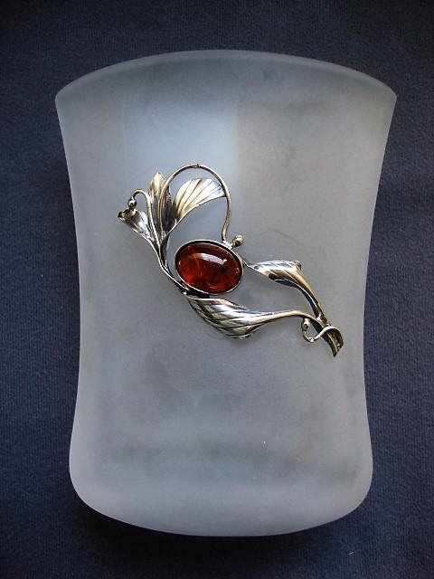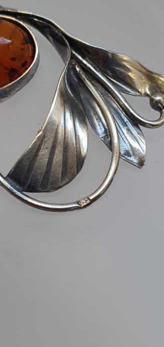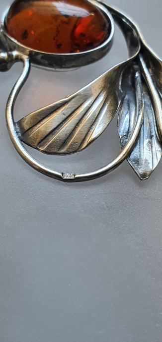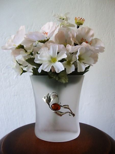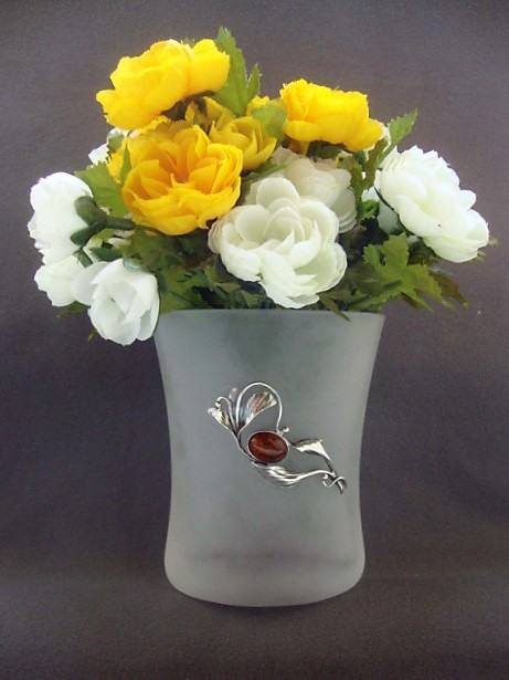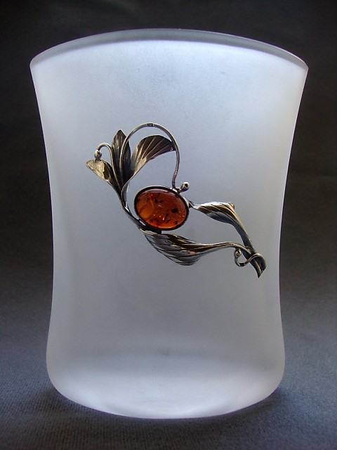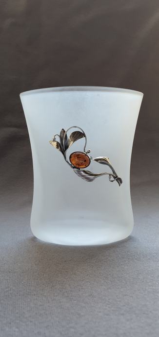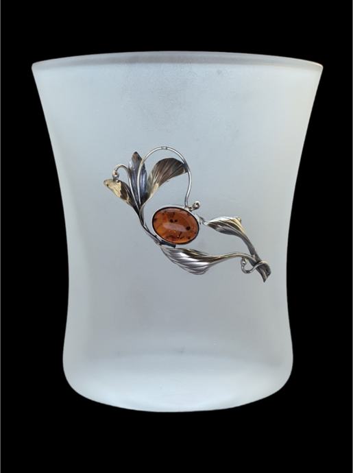 Krasna vintage vaza iz 1980.setih ukrašena srebrnim ukrasom i baltickim jantarom potpisan žig majstora i oznake 925