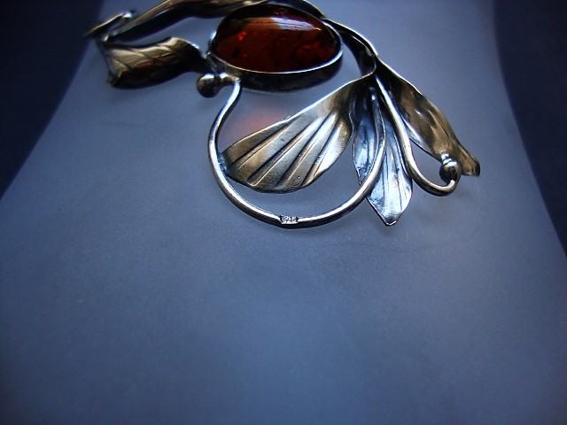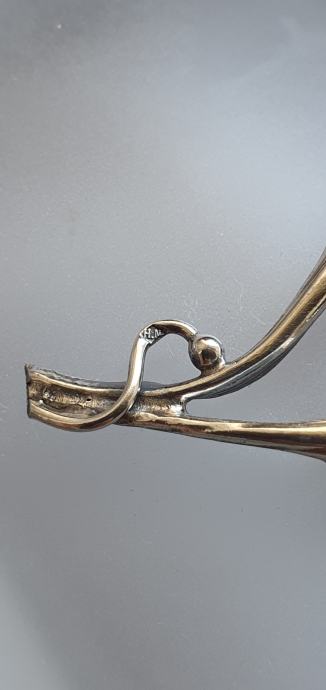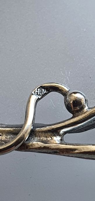 Srebrni ukras dimenzije 7,5 cm x x 3 cm x 4,2 cm sa dvije oznake 925 i inicijal majstora H.M ili N dizajnera zlatara