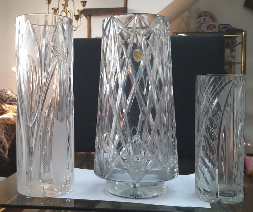 Prodajem tri vaze od brušenog kristala povoljno. Samoborski kristal,