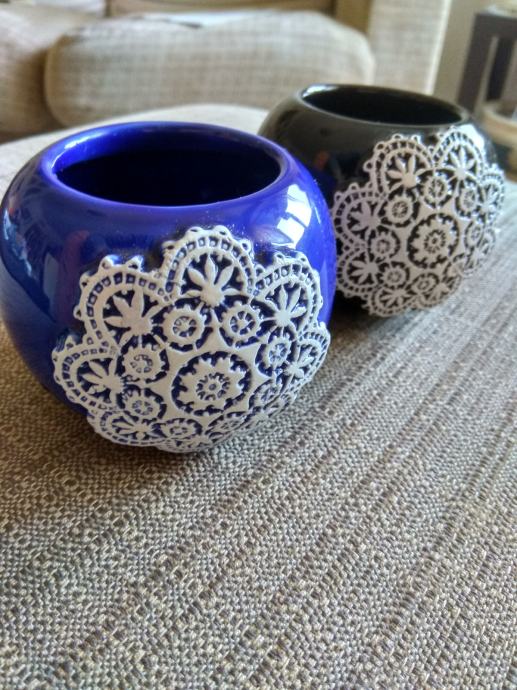 prodajem nove, prekrasne ručno rađene vaze, od terakote... sa uzorkom paške čipke, cca 7 cm visine