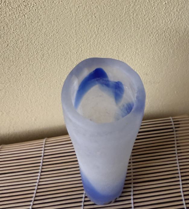 Očuvana. Ručni rad, debelo staklo. Podhraški umjetnički oblikovano staklo. Rijetki primjerak unikatne vaze.Nema oštećenja. Visina 25 cm
