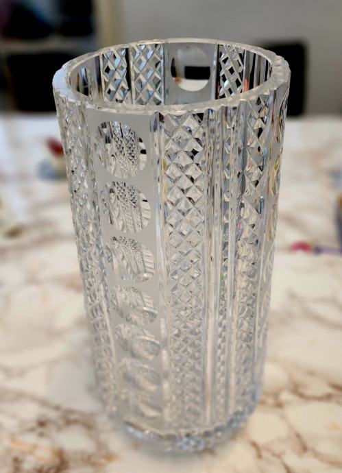 Velika teška bogato brušena kristalna vaza