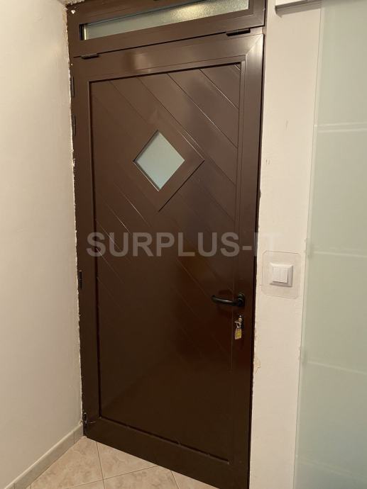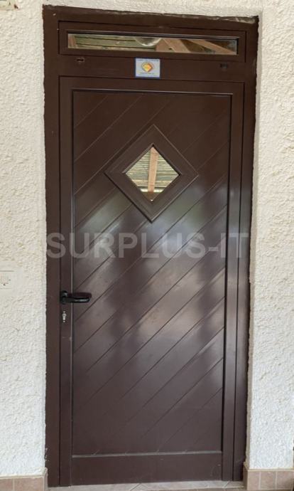 Aluminijska stolarija tip Ulazna Vrata sa Nadsvjetlom, blindirano, brava kljuc, Plastificirano u smeđu boju. Dimenzije ( Š x V x D ) u cm 102x232; Art. No. P2071