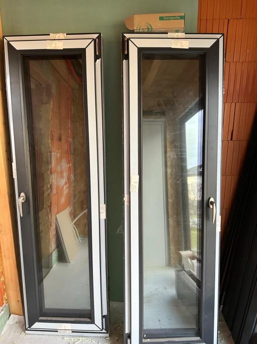 Prodajem 2 nova balkonska vrata , antracit, elektro žaluzinama , komarnicima, dimenzije 610x 2025 cm. Cijena po komadu 300 eura.