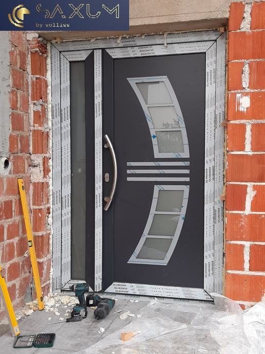 ULAZNA VRATA JEDNOKRILNA/PODESIVI PANTI/UKRASNI PANEL, 5 komora, 2 brtve, staklo 4-16-4 LOWe 1,3 W/m2K OZ