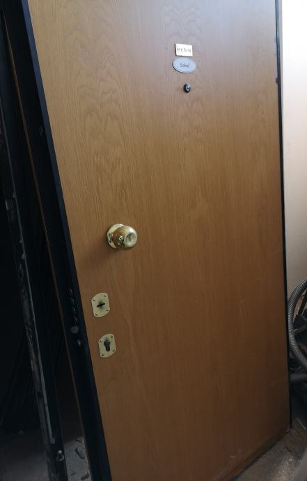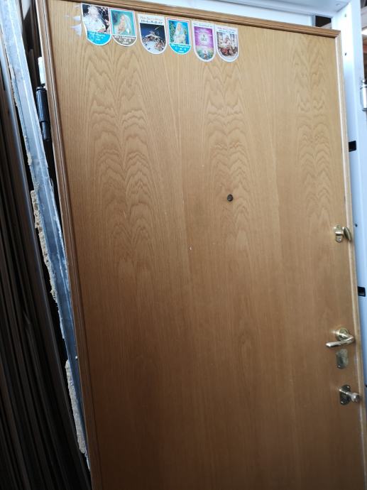 Vrata su desni smjer (otvaraju se udesno prema stanu) sa mesing okovima i duplom bravom (sef+cilindar).